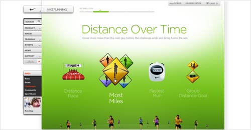 Vous recevrez également des défis conseillés choisis automatiquement par Nike+ depuis la galerie. Grâce à cette fonctionnalité, vous pouvez vous inscrire à une course ou prévoir une course regroupant des personnes du même pays, de la même classe (déterminée par la date d’adhésion) ou de niveau sportif identique. Les nouveaux codes couleur déterminés par le nombre de kilomètres parcourus. Désormais, vous pouvez regrouper les coureurs par niveau d’intensité et motiver chacun d’eux afin d’atteindre de nouveaux objectifs.