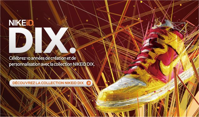Posté par Quadra94 - Publicités, Running 29 avril 2010Depuis 10 ans, Nike donne accès à la personnalisation de certains modèles de sa collection. Un 10ème anniversaire, ça se fête !