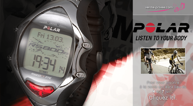 Posté par Djailla - Running, Ventes privées 3 juin 20106 mois après la précédente vente privée Polar, même marque, même endroit ! Le leader des systèmes de mesures de fréquence de cardiaque et de localisation GPS proposent des grosses promos sur leurs anciennes gammes de produits.