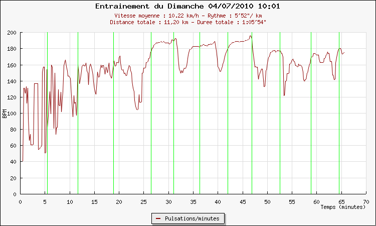 Posté par Djailla - Developpement Web, Technologie 6 juillet 2010Avec le nouveau cardio Nike+, les fichiers extraits de l’iPod Nano peuvent maintenant aussi contenir les données de battement par minute (BPM) du coeur, j’ai donc mis à jour Plotrun pour qu’il puisse aussi afficher cette information !