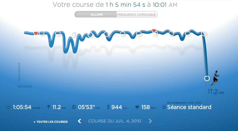 Même si j’en ai déjà beaucoup parlé sur le blog et que je l’ai même commandé aux US, je n’ai toujours pas mis la main sur mon cardio compatible Nike 🙁 Par contre, le Nike Store Paris en a reçu quelques exemplaires cette semaine et proposais ce dimanche matin une séance avec donc Pedro qui avait quelques exemplaires en prêt pour les participants de la séance. Ce sont donc Chloé et moi qui nous sommes portés volontaires pour l’expérience.