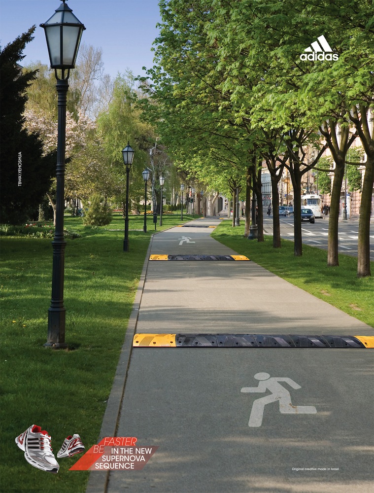 Posté par Djailla - Publicités, Running 11 janvier 2011Si vous aussi, vous avez des coureurs trop rapides devant chez vous, faites comme dans cette publicité pour Adidas et installez des dos d’âne sur le trottoir 😉