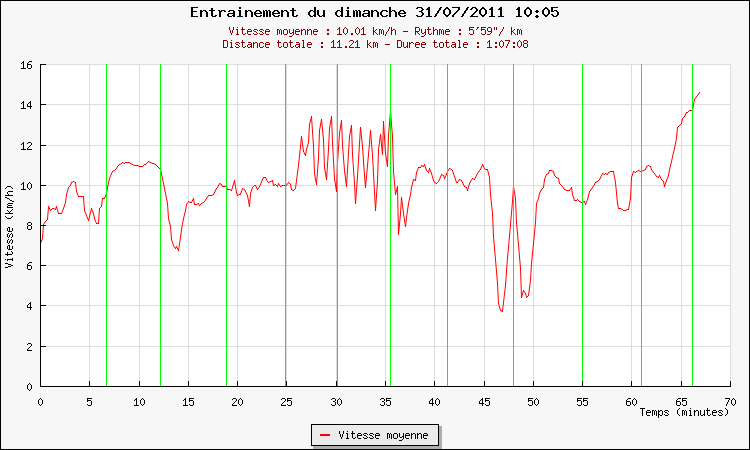 Echauffement sur les 3 kilomètres qui nous amène au bois, ensuite on continue tranquillement jusqu’au module de fractionné, 10 x 30/30. Les coaches nous encadrent parfaitement, signal de départ et de fin et la bonne idée de faire revenir les plus rapide en arrière pour reformer le peloton 🙂