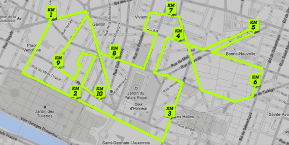 c’est bizarre car tout comme l’année dernière le parcours réél était différent du parcours affiché sur le plan. On est pas passé rue de Rivoli et on a contourné le Palais Royal.