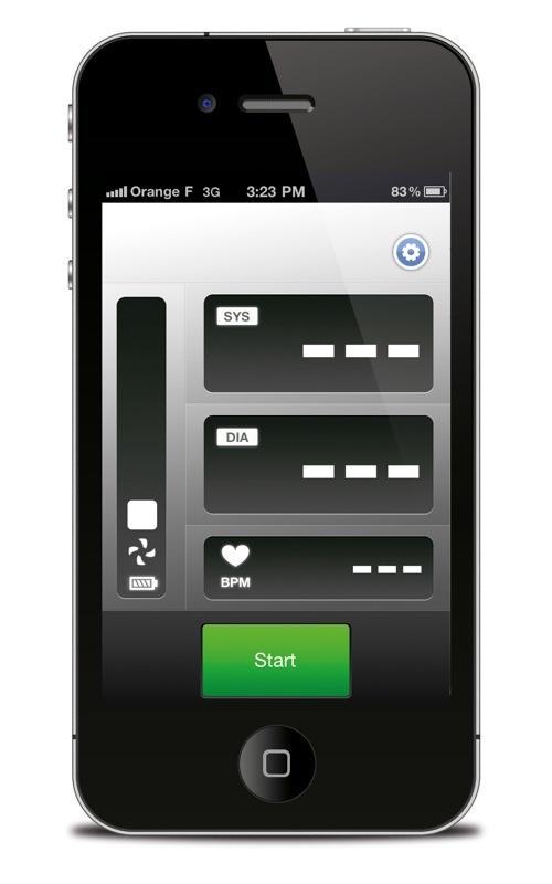 L’utilisation est ultra simple, glissez l’appareil autour de votre bras, le tube métallique vers le corps et 2 cm juste au dessus du coude. Branchez le ensuite à l’iPhone avec le câble intégré, l’application se lancera automatiquement sur l’iPhone et vous n’aurez ensuite qu’à lancer la mesure en appuyant sur le bouton start sur l’écran de l’iPhone.