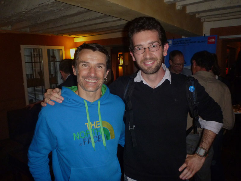 Le clou de cette soirée était ma rencontre avec Sébastien Chaigneau, l’ambassadeur North Face pour le trail, il a terminé 3ème à l’UTMB cette année et est favori pour cette édition 2012 (Kilian Jornet ne participant pas à la course cette année).